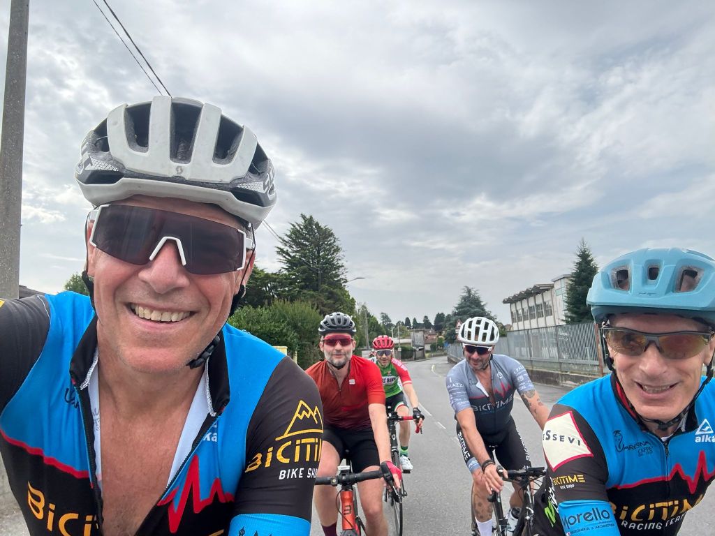 Per i percorsi in BDC siamo partiti praticamente tutti insieme (corto e lungo) ma già al primo muro (dopo c.ca 1 km) Stefano ha bucato, tornati in suo aiuto Carlo, Massimo e Giuseppe sono ripartiti dopo un discreto intervallo di tempo mantenendo un buon passo per rientrare sugli altri ma “non era nelle corde”, al 10° chilometro ha avuto problemi Giuseppe (mozzo anteriore e freno) ma anche in questo caso si è trattato solo di una sosta temporanea; raggiungere il gruppetto dei fuggitivi non è stato facile (sul lungo lago è anche caduta la catena a Carlo) perché Renato, Gianandrea, Luca e Rossano non si risparmiavano mantenendo un ottimo passo sostenuto e, così, la “riunificazione” c’è stata solo al Parco Cinque Piante di Oltrona al lago (dove era allestito un ricco ristoro ed è venuto a salutarci Niccolò Cavallo in procinto di partecipare all’Ironman di Nizza il 29/06 )… ma è durata poco perché alla ripartenza Stefano è andato subito forte stuzzicando Carlo e Massimo con Giuseppe e Renato a ruota, morale dopo il muro di Comerio si era già tutti “dispersi”, da qui ognuno ha fatto il suo, chi per il corto chi per il lungo, con Stefano che ha preso il largo con Carlo mentre Massimo e Rossano hanno proseguito in copia fino al traguardo.